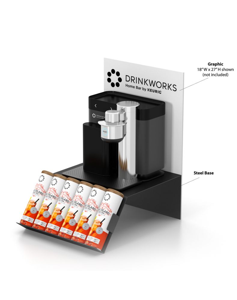 This countertop at home beverage POP display showcases both a machine, as well as the consumable pods.