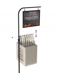These pallet signholders include J-hooks 8” apart on-center allowing you to easily integrate any hardware or graphics.  You can also purchase the pallet sign holder with 11” x 14” Single sided Framette or double sided Framette for added convenience that attaches to the J hooks.    With our add on Framette hardware graphic swap outs are quick and easy with no special tools required.