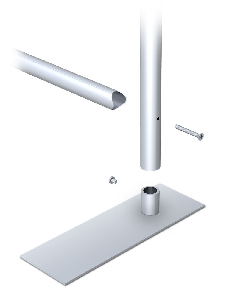 These graphic mattress headboards are made with lightweight, but durable aluminum uprights combined with a sturdy 4” x 18” steel base with inner support bushings which ensure the structural integrity of the unit. These cost efficient stands ship flat, and are ready for fast and easy assembly in less than five minutes and the steel base slides easily under the bed frame for a clean look, easy portability, and extra stability.