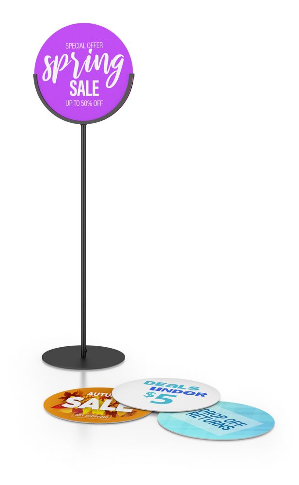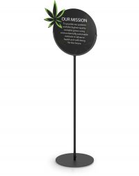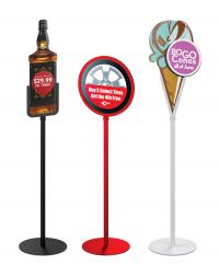 Lollipop Stands come in a standard black color with a round base and 13” or 15” in diameter. Our speciality is custom so if you need a custom base, custom color, or custom shape, we can help! We can provide custom powder coating colors using RAL or PMS color matching.