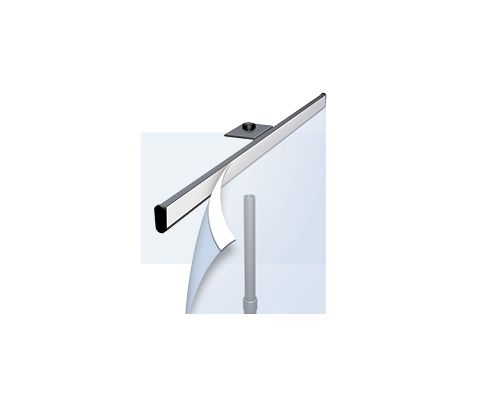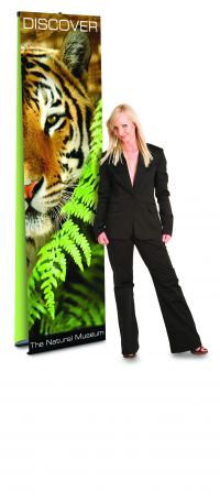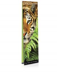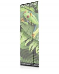 - Clean edge to edge display, with nearly ‘invisible’ banner stand hardware hidden behind the graphic