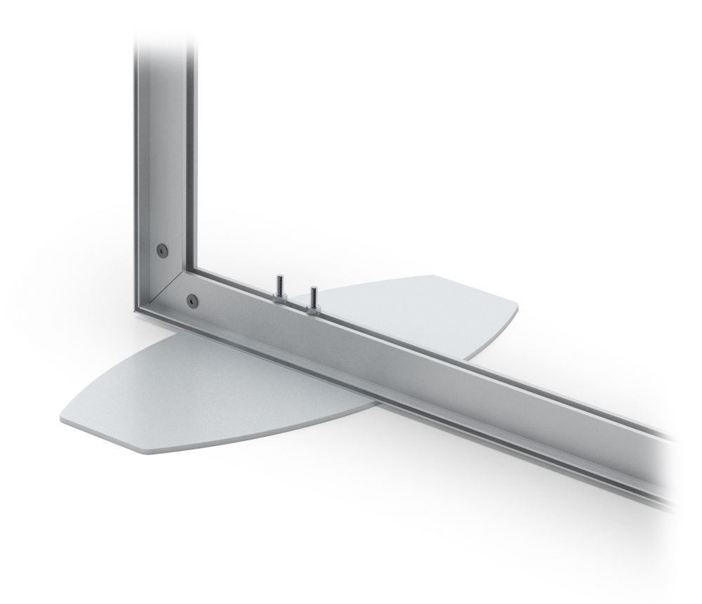 Our Ceiling Charisma Hung Charisma Single Sided frames include eye hooks (minimum 2 per frame, larger frames may include more eye hooks). If you need a floor standing SEG frame, our Charisma Single Sided Floor Mount units include steel bases, with all the work already completed to make attaching the bases easy. Our steel bases are texture powder coated for a durable finish.