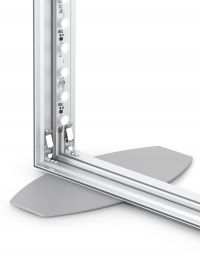Available as Free Standing Charisma SEG Double Sided lightboxes that include steel bases and edge lighting. Going bigger or need even more stability? Ask about our Mega Bases which support the double sided SEG frame from the side and from below. Free-standing double-sided light boxes are ideal for use at a trade show or in a retail display window to capture attention!