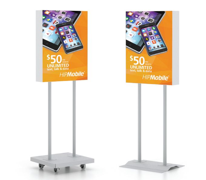 Lightbox Poster Greater Stand & Lightbox Poster Pedestal Stand with Rollers