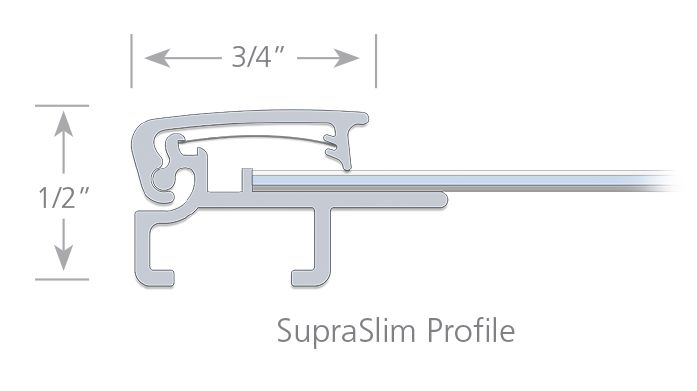 Our SupraSlim Snapframes have a trim ¾” profile, with a narrow bezel. Despite their minimalist profile, our slim aluminum snapframes are sturdy and durable thanks to all-metal construction (with plastic backer) that has been perfected over 104 company history to help us become the largest US-based SnapFrame manufacturer.